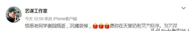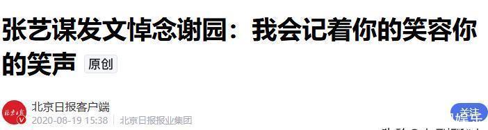 北京日报:张艺谋发文悼念谢园:我会记着你的笑容你的笑声